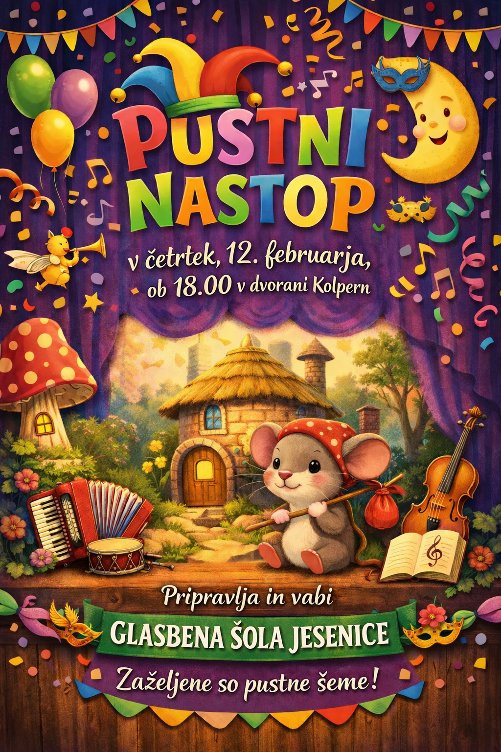 četrtek, 12. februar, ob 18.00 v Kolpernu: Pustni nastop